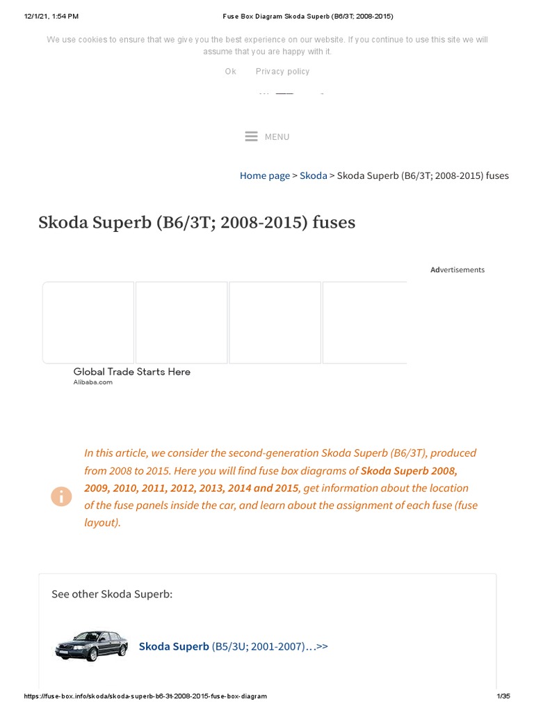 Fuse Box Diagram Skoda Superb B6 3t 2008 2015 Pdf Headlamp Anti Lock Braking System