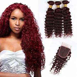 Amazon Com Brazilian Deep Wave Human Hair With Closure 26 28 60 20 Unprocessed 9a Deep Curly Virgin Hair Weave 3 Bundles With 4 4 Lace Closure Narural Color Beauty Personal Care